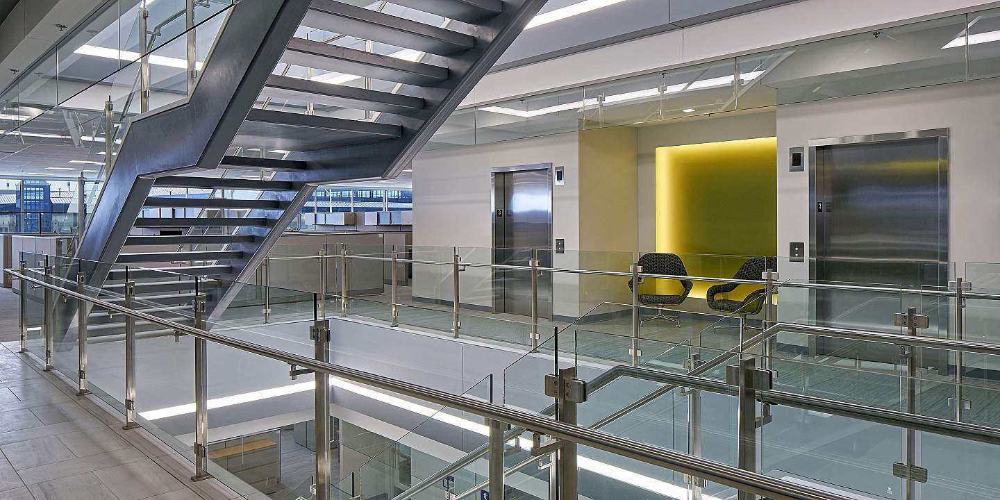 The Wayne County Airport Authority (WCAA) manages the operations of the Detroit Metropolitan Airport (DTW) and Willow Run Airport, which together make up one of the world’s leading air transportation hubs. The WCAA developed a new facility connected to DTW’s North Terminal where their management and administration teams can connect and collaborate to take both airports to new heights.
